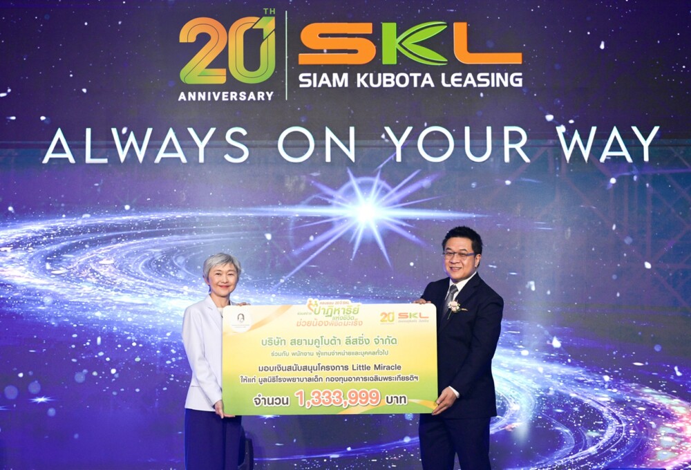 บริษัท สยามคูโบต้า ลีสซิ่ง จำกัด (SKL) นำโดย นายปิยะชาติ ศรีมารุต กรรมการผู้จัดการ (ขวา) เป็นตัวแทนมอบเงินสนับสนุ