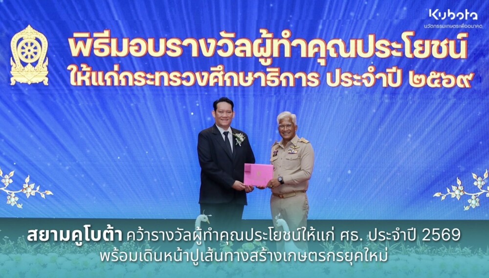 สยามคูโบต้า คว้ารางวัลผู้ทำคุณประโยชน์ให้แก่ ศธ. ประจำปี 2569 พร้อมเดินหน้าปูเส้นทางสร้างเกษตรกรยุคใหม่