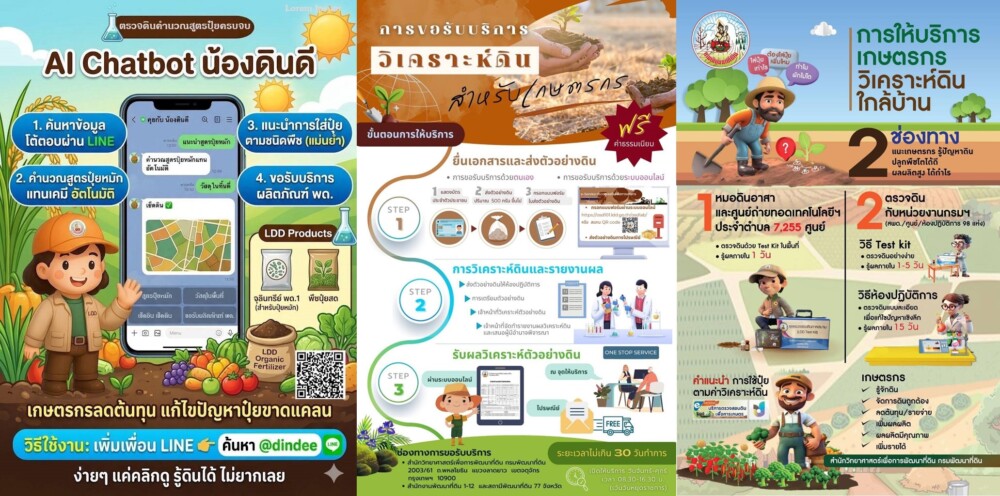 เดินหน้า 4 มาตรการเร่งด่วน ครอบคลุมทั่วประเทศ ดังนี้ 1. แผนที่ธาตุอาหารพืช ใช้ปุ๋ยแม่นยำ ลดต้นทุนจริง พัฒนา “แผนที่ธาตุอาหารพืช” รายพื้นที่ทั่วประเทศ ช่วยให้เกษตรกรวิเคราะห์ดินและใช้ปุ๋ยได้อย่างเหมาะสมผ่านระบบดิจิทัล เช่น แผนที่ดิน บัตรดินดี Zoning by Agri-Map และ e-Service ตรวจสอบดิน พร้อม AI Chatbot “น้องดินดี” ผ่าน Line น้องดินดี ให้คำปรึกษา 24 ชั่วโมง