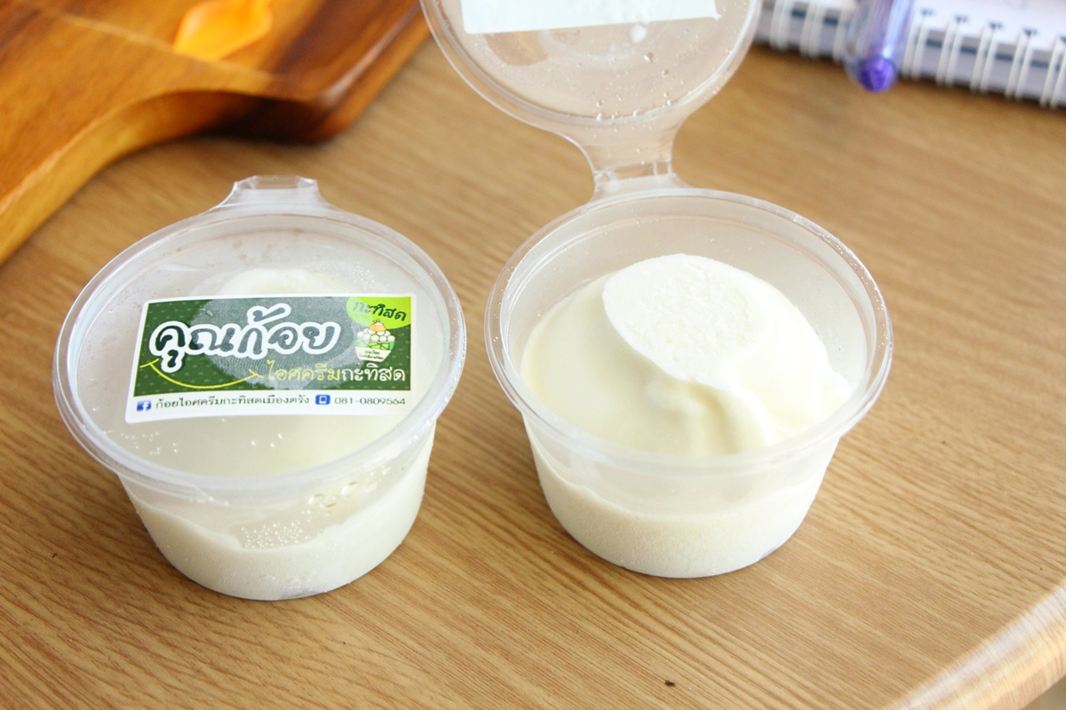 “เรื่องของรสชาติได้นำมาปรับเข้ากับยุคปัจจุบัน ให้ถูกปากลูกค้ายุคใหม่มากขึ้น จะต้องไม่หวานมาก และจะต้องได้รสชาติของวัตถุดิบที่นำมาทำ เช่น รสเสาวรส ลูกค้าทานแล้วต้องเป็นรสเสาวรส ทุเรียนก็ต้องรสทุเรียนเลย จะไม่ใช้หัวเชื้อหรือสารแต่งกลิ่น ทั้งนี้สำหรับลูกค้าที่สนใจสามารถติดต่อได้ทางเฟซบุ๊ก “ก้อย ไอศกรีมกะทิสดเมืองตรัง”