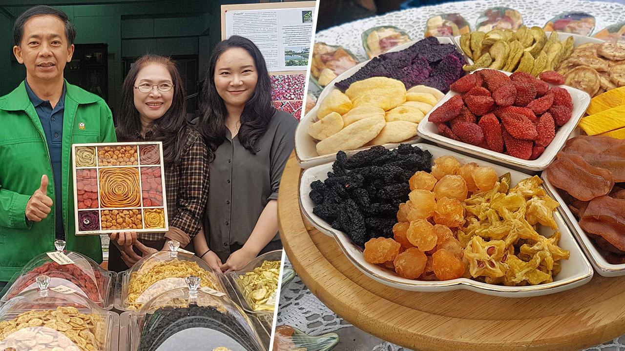ผลไม้ที่นำมาอบแห้ง เริ่มมีหลายชนิดทั้งสตรอเบอรี่ ลำไย มะม่วง ขิง แก้วมังกร ทุเรียน และสับปะรดนางแล…เน้นเอาแต่วัตถุดิบในพื้นที่ให้ชาวบ้านมีทางเลือกไม่ต้องเร่งขายให้หมดก่อนการเน่าเสีย ตลาดเริ่มโต ผู้บริโภครู้จักกว้างขึ้น ทำให้การอบแห้งผลไม้ไม่ทันตามยอดสั่ง เพราะเครื่องอบที่มีอยู่ขนาดเล็กๆ อบผลไม้สดได้ 50 กก.ต่อวัน ทางธนาคารเพื่อการเกษตรและสหกรณ์การเกษตร (ธ.ก.ส.) จึงสนับสนุนเงินทุนดอกเบี้ยต่ำ เพื่อนำไปซื้อเครื่องอบ ปรับพื้นที่ให้รับวัตถุดิบให้ได้มาตรฐานการผลิต
