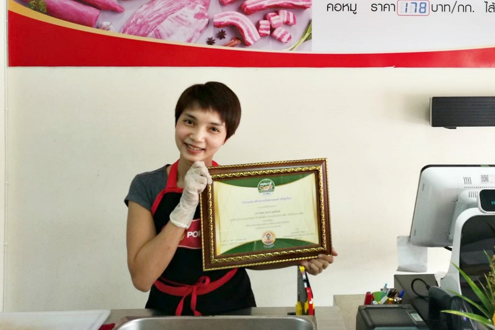 สุภาภรณ์ เล่าว่า ตอนแรกที่เริ่มทำนั้น ตัเองทำอะไรไม่เป็นเลย ทางทีมงานซีพีเอฟจึงมาช่วยให้คำแนะนำอย่างใกล้ชิด สอนเทคนิคการตัดแต่ง เทคนิคการขาย การดูแลบริหารจัดการร้าน เรียกว่าสนับสนุนทุกด้านเพื่อให้ตนเองเริ่มต้นอาชีพได้อย่างเข้มแข็ง และด้วยนโยบายของเธอที่เน้นการขายคุณภาพ ทั้งคุณภาพของสินค้าที่ดีจากซีพีเอฟ และคุณภาพการตัดแต่งผลิตภัณฑ์หมู การบริการที่ดี มีบริการหั่นฟรีและส่งถึงบ้าน จึงได้รับเสียงตอบรับที่ดีจากชุมชนที่เชื่อมั่นในแบรนด์สินค้า คุณภาพ และความสะอาดของผลิตภัณฑ์ ร้านค้า และผู้จำหน่าย แถมยังมีการการันตีจากกรมปศุสัตว์ ในโครงการ “ปศุสัตว์ OK” คนซื้อจึงมั่นใจที่จะเลือกซื้อเนื้อหมูที่มีคุณภาพ สด สะอาด ปลอดภัยไม่มีสารเร่งเนื้อแดง และไม่มียาปฏิชีวนะตกค้าง
