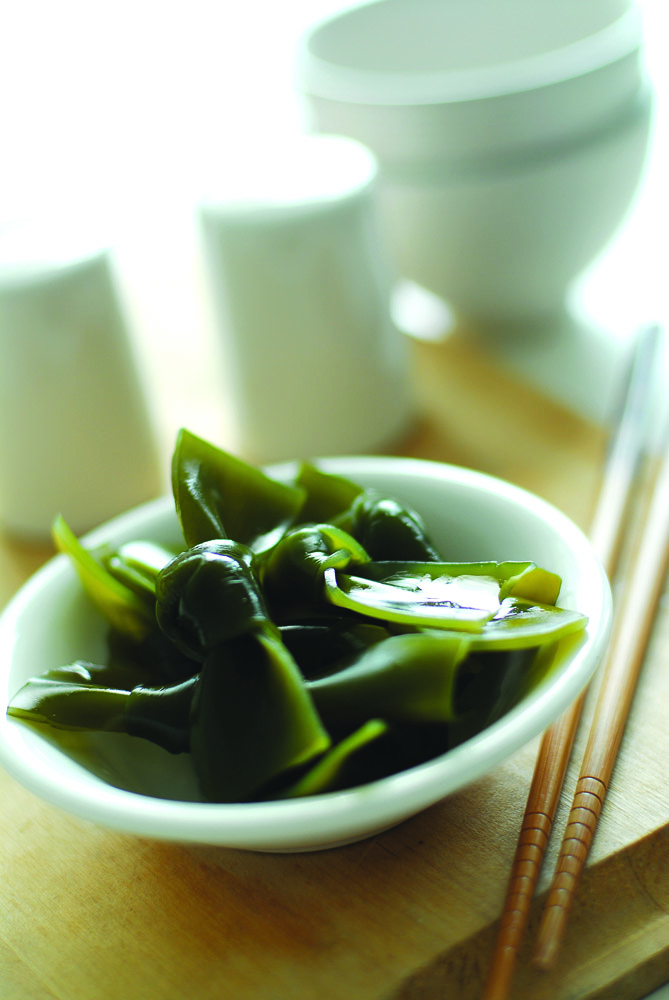 อันดับ 4 สาหร่ายทะเล อุดมไปด้วยเส้นใยอาหาร วิตามินและแร่ธาตุต่างๆ แคลอรีต่ำ มีประโยชน์ในการขจัดสารพิษกระตุ้นเมแทบอลิซึม ลดความเครียดและวิตกกังวล ในสาหร่ายทะเลมีแคลเซียมสูง เมื่อกินคู่กับผักใบเขียว อาหารจำพวกไข่และนมที่มีวิตามินเคจะช่วยให้ร่างกายดูดซึมวิตามินเคได้ดีขึ้น บำรุงกระดูก กระตุ้นการแข็งตัวของเลือดในขณะเดียวกันสาหร่ายมีไอโอดีน หากกินคู่ผักบางชนิดมีสารไทโอไซยาเนตที่ควบคุมการดูดซึมไอโอดีนของร่างกายติดต่อเป็นเวลานานๆ จะทำให้การทำงานของต่อมไทรอยด์เสียสมดุล