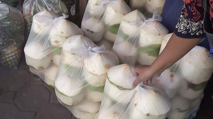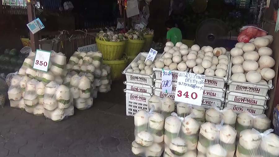 พนักงานในร้าน เผยว่า สั่งมะพร้าวมาจาก อ.ดำเนินสะดวก จ.ราชบุรี แหล่งปลูกมะพร้าวน้ำหอม แต่ราคาขยับขึ้นทุกสัปดาห์จากถุง 10 ลูก ราคา 190–200 บาท ล่าสุดถุงละ 330–360 บาท ซึ่งเพิ่มขึ้นมากกว่า 100 บาท โดยปกติแล้ว จะขายได้ถึงวันละ 160 ถุง หรือ 1,600 ลูก แต่ด้วยราคาที่แพงขึ้น ทำให้ยอดขายลดลงเหลือเพียง 500 ลูกต่อวัน เนื่องจากพ่อค้าแม่ค้าที่ซื้อไปขายปลีกต้องใช้ต้นทุนสูง ทำให้ต้องลดปริมาณการซื้อลงตามต้นทุนที่มีอยู่