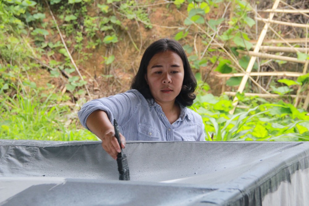 “ที่จริงเราได้เริ่มผลิตบ่อน้ำมากว่า 2 ปีแล้ว มีลูกค้ามาตลอด ทั้งหน่วยงานภาครัฐและเกษตรกร ทำให้มีรายได้เฉลี่ยต่อปี หักต้นทุนแล้ว อยู่ประมาณ 3 แสนบาท ส่วนค่าแรงใช้แรงงานภายในครัวเรือนเป็นหลัก ตอนนี้ทางการยางแห่งประเทศไทย ( กยท. ) ได้เข้ามาดูแลให้ความรู้ในด้านการแปรรูป จัดอบรมหลักสูตรต่างๆ และยังช่วยเหลือสนับสนุนเงินทุนจำนวน 8 หมื่นบาท เพื่อใช้ในการปรับปรุงกระบวนการผลิตด้วย” เธอ กล่าว