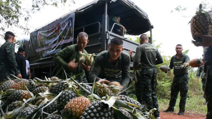 พล.ต.สมชาสย ครรภาฉาย ผู้บัญชาการมณฑลทหารบกที่ 210 นครพนม สั่งการให้ เจ้าหน้าที่กำลังทหารชุดเฉพาะกิจ ลงพื้นที่นำรถบรรทุก เข้าไปดูแลช่วยเหลือ ในการขนส่ง สับปะรด จากสวนของเกษตรกรในพื้นที่ อ.โพนสวรรค์ และ อ.ท่าอุเทน จ.นครพนม นำส่งตลาด หลังเกษตรกรประสบปัญหาความเดือดร้อนจากราคาสับปะรดตกต่ำสุดในรอบ 10 ปี มีราคาหน้าสวน ประมาณกิโลกรัมละ 2-3 บาท จากราคาปกติกิโลกรัมละ 8-10 บาท สร้างความเดือดร้อนให้กับเกษตรกร ประสบปัญหาขาดทุน เพราะต้องแบกภาระค่าขนส่งน้ำมันแพง เพราะต้นทุนอยู่ที่กิโลกรัมละ 3 บาท ส่วนสาเหตุหลักมาจากไม่มีโรงงานมารับซื้อ รวมถึงไม่มีโรงงานแปรรูปในพื้นที่ ทำให้ผลผลิตล้นตลาด เพราะมีผลผลิตออกสู่ตลาดวันละประมาณ 60-70 ตัน