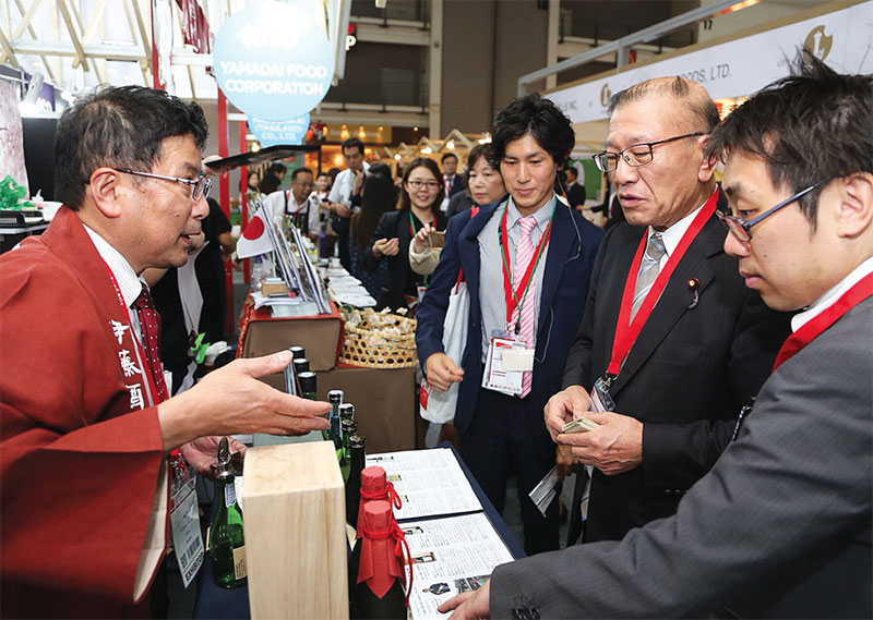 โดยอาหารที่น่าสนใจที่จะใช้ไทยเป็นศูนย์กระจายสินค้า ได้แก่ อาหารเพื่อแปรรูปเป็นอาหารกระป๋อง เช่น ปลาทูน่า (คัตสึโอะ, มากูโระ) ปลาซาบะ และปลาซาร์ดีน ซึ่งมูลค่าส่งออกปัจจุบันอยู่ในระดับหลายพันล้าน โดยในงาน Thaifex ปี 2018 ทางเจโทรได้จัดกิจกรรมจับคู่ทางธุรกิจระหว่างผู้ผลิตอาหารในไทย และผู้ส่งออกจากญี่ปุ่น ภายในงานเจแปน พาวิลเลียนครั้งนี้ด้วย โดยมีบริษัทและองค์กรผู้ค้าอาหารญี่ปุ่น เข้าร่วม 78 บริษัท โดยปีนี้มีไฮไลต์อยู่ที่ “เหล้าอาวะโมริ” จากโอกินาวะ เนื่องจากเป็นเหล้าที่หมักโดย “ข้าวไทย” ที่ส่งออกไปยังโอกินาวะ ซึ่งมีความสัมพันธ์กับประเทศไทยมาอย่างยาวนานถึง 600 ปี