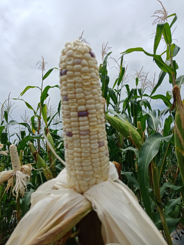 2.ข้าวโพดข้าวเหนียว พันธุ์เหนียวทับทิม เป็นข้าวโพดข้าวเหนียวสีม่วงทั้งฝัก มีลำต้นที่แข็งแรง โตเร็ว ฝักสีม่วงแดงเข้ม ติดฝักสม่ำเสมอ เปลือกฝักปิดถึงปลายฝัก เมล็ดเรียงแถวตรงจนถึงปลายฝัก มีสารแอนโธไซยานินสูง รสชาติเหนียวนุ่ม แม้ทิ้งไว้ค้างคืนเมล็ดก็ไม่แข็ง