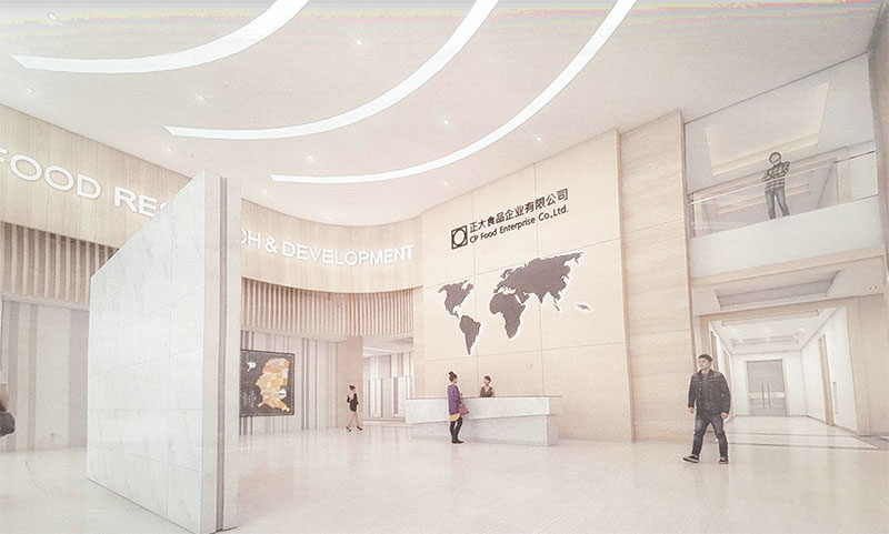 ทั้งนี้ เพราะหัวใจของการสร้างสรรค์ผลิตภัณฑ์อาหารใหม่ ๆ อยู่ที่ทีมงานวิจัยและพัฒนาอาหาร (R&D) ดังนั้น การจัดตั้งศูนย์ R&D มาตรฐานโลก จึงถือเป็นอีกปัจจัยหนึ่งที่เอื้อให้นักวิจัยพัฒนาอาหาร มีความคิดสร้างสรรค์ มีพื้นที่ทดลองผลิตสินค้าใหม่ มีแล็บตรวจสอบความปลอดภัยในอาหาร ตลอดจนมีพื้นที่ทดสอบความพึงพอใจของผู้บริโภค ซึ่งเป็นที่มาของการเริ่มก่อสร้าง “ศูนย์วิจัยและพัฒนาอาหาร” ณ โครงการ CP Eco Agriculture Industry Park เมืองสือซี จังหวัดหนิงโป มณฑลเจ้อเจียง ซึ่งคาดว่าจะแล้วเสร็จในเร็ว ๆ นี้ ทั้งนี้ หากเชื่อมโยงศูนย์วิจัยเจ้อเจียงเข้ากับ “ศูนย์วิจัยและพัฒนาอาหาร” อ.วังน้อย จ.พระนครศรีอยุธยา ซึ่งก่อสร้างเสร็จเรียบร้อยแล้ว จะส่งผลให้เกิดการผนึกกำลังพัฒนาการผลิตสินค้าอาหารสำเร็จรูปใหม่ ๆ มากยิ่งขึ้น