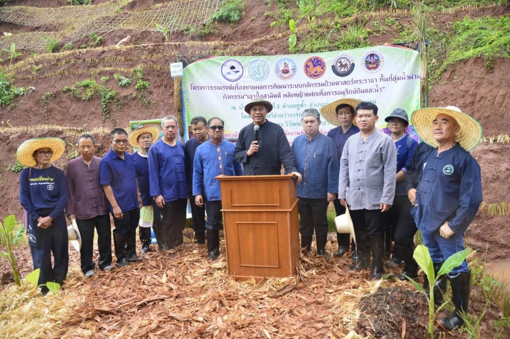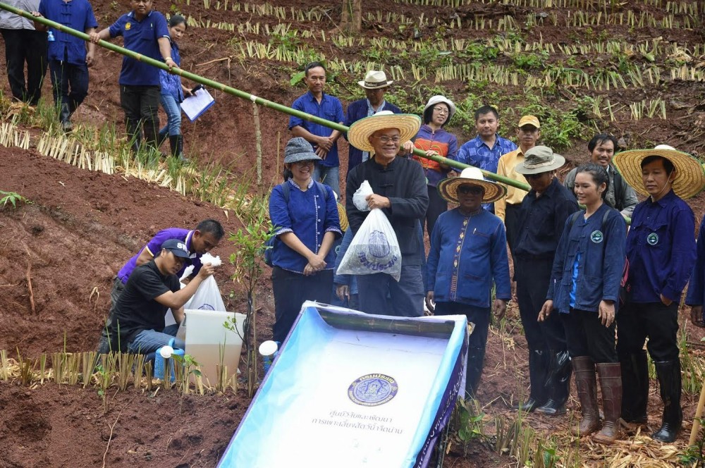 รวมพลทีมนักวิจัยจิตอาสาจาก 9 หน่วยงาน สร้างต้นแบบการจัดการพื้นที่ตามศาสตร์พระราชา เพื่อหาแนวทางการเพิ่มผลผลิตข้าวในรูปแบบที่เหมาะสมต่อวิถีวัฒนธรรมชาว อ.บ่อเกลือ จ.น่าน “อาจารย์ยักษ์” แนะแนวทางแก้ปัญหาต้องปรับทั้งระบบการผลิต เพื่อลดการชะล้างหน้าดิน ปรับพื้นที่แล้วปลูกกล้วยปลูกป่า 5 ระดับ เพื่อเพิ่มความชื้นสัมพัทธ์ ขุดหนอง ขุดคลองไส้ไก่เก็บน้ำฝนเพิ่มความชื้น ปลูกแฝกเพื่อการอนุรักษ์ดินและน้ำ หลังพบที่ห้วยกระทิง จ.ตาก ผลผลิตข้าวเพิ่มถึง 3 เท่า