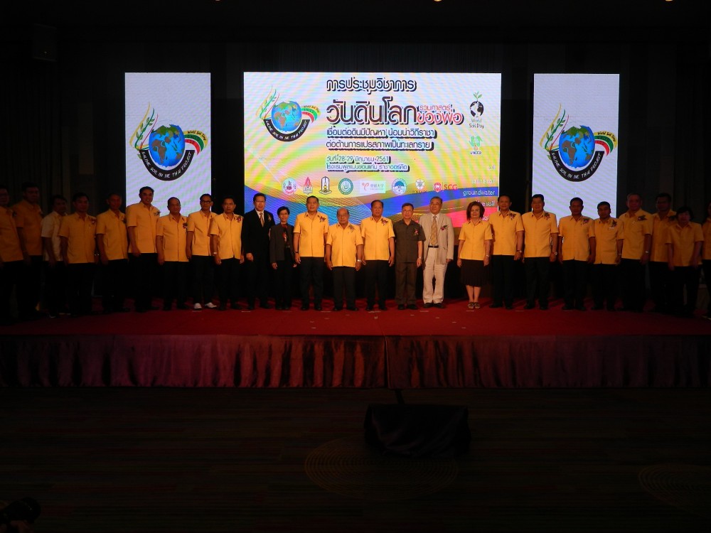 ด้านนายเข้มแข็ง ยุติธรรมดำรง รองอธิบดีกรมพัฒนาที่ดินด้านวิชาการ กล่าวว่า การจัดงานในครั้งนี้เกิดขึ้น จากการร่วมมือกันระหว่างกรมพัฒนาที่ดินและผู้แทนจาก UNCCD (United Nations Convention to Combat Desertification unccd โดยมีสำนักงานพัฒนาที่ดินเขต 5 กรมพัฒนาที่ดิน เป็นแม่งานหลักร่วมกับกองแผนงานกรมพัฒนาที่ดิน และมีภาครัฐภาคเอกชน และองค์กรระหว่างประเทศ สนใจเข้าร่วมงานกว่า 400 คนจัดขึ้นมาเพื่อร่วมกันน้อมรำลึกถึงพระมหากรุณาธิคุณในหลวงรัชกาลที่ 9 ในวันดินโลก และเป็นการรณรงค์ต่อต้านการแปรสภาพเป็นทะเลทราย