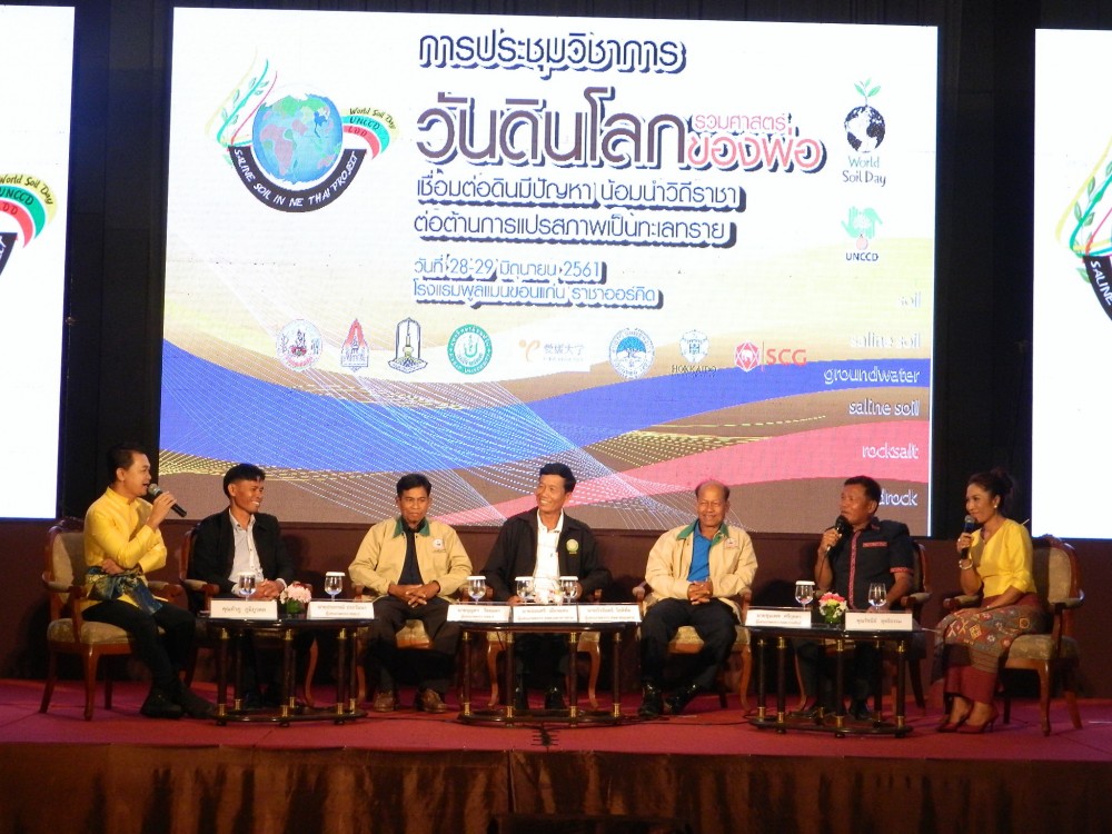 พร้อมกันยังมีการจัดนิทรรศการที่เสนอผลงานวิจัยแบ่งเป็น 3 ส่วน 14 เรื่อง ส่วน 1.นิทรรศการวันดินโลก 2.เทศกาลการต่อต้านการแปรสภาพเป็นทะเลทรายและ 3.นิทรรศการการรายงานความก้าวหน้าและผลสัมฤทธิ์ของการพัฒนาพื้นที่ดินเค็ม นอกจากนี้มีการเสวนาในหัวข้อปัญหาดินของราษฎร์แก้ด้วยปราชญ์ของพ่อ และศาสตร์พระราชากับการแก้ไขปัญหาดินเค็ม เป็นต้น