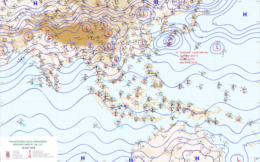| ในช่วงวันที่ 30-31 ก.ค. 61 ประเทศไทยยังคงมีฝนตกชุกหนาแน่นและมีฝนตกหนักบางแห่งบริเวณภาคเหนือ ภาคตะวันออกเฉียงเหนือ ภาคกลาง ภาคตะวันออก และภาคใต้ ขอให้ประชาชนบริเวณดังกล่าวระวังผลกระทบจากฝนตกหนักและฝนตกสะสมที่ทำให้เกิดน้ำท่วมฉับพลัน น้ำป่าไหลหลาก และน้ำล้นตลิ่ง รวมถึงดินโคลนถล่มไว้ด้วย สำหรับคลื่นลมบริเวณทะเลอันดามันมีคลื่นสูง 2-4 เมตร และอ่าวไทยตอนบนมีคลื่นสูง 2-3 เมตร ขอให้ชาวเรือเดินเรือด้วยความระมัดระวังและเรือเล็กควรงดออกจากฝั่งในช่วงเวลาดังกล่าว สำหรับประชาชนที่อาศัยอยู่บริเวณชายฝั่งภาคใต้ฝั่งตะวันตก และภาคตะวันออกให้ระวังคลื่นที่พัดเข้าหาฝั่งไว้ด้วย ทั้งนี้เนื่องจากหย่อมความกดอากาศต่ำปกคลุมบริเวณอ่าวตังเกี๋ยและประเทศเวียดนามตอนบน ประกอบกับมรสุมตะวันตกเฉียงใต้ที่พัดปกคลุมทะเลอันดามัน ภาคใต้ และอ่าวไทย มีกำลังแรง ลักษณะเช่นนี้ทำให้ประเทศไทยมีฝนตกชุกหนาแน่น กับมีฝนตกหนักบางแห่ง จึงขอให้ประชาชนติดตามประกาศจากกรมอุตุนิยมวิทยาอย่างใกล้ชิด และติดตามข้อมูลที่เว็บไซต์กรมอุตุนิยมวิทยา http://www.tmd.go.th หรือ สายด่วนพยากรณ์อากาศ 1182 ได้ตลอด 24 ชั่วโมง