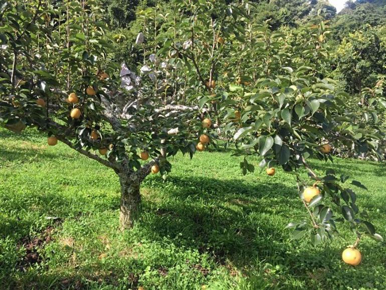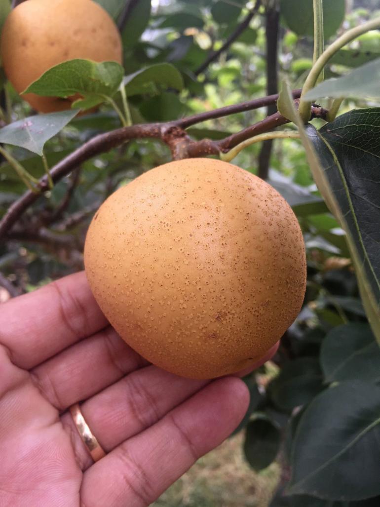 สาลี่ก็เช่นกัน…ปลูกในบ้านมาตั้งแต่ปี 2508 และมีพัฒนาปรับปรุงพันธุ์มาเรื่อย จนได้พันธุ์ที่เหมาะกับเมืองไทย เป็นพันธุ์ “สาลี่ทอง” ที่เหลืองอร่ามเหมือนทอง