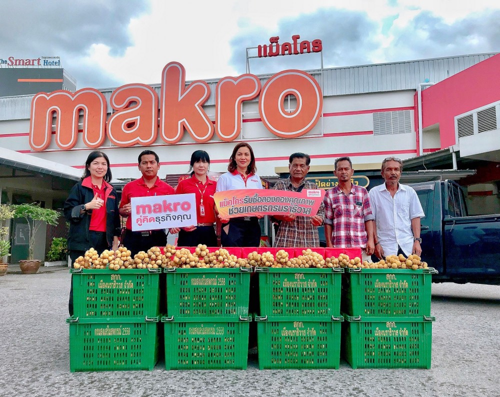บริษัท สยามแม็คโคร จำกัด (มหาชน) นำโดย คุณพนารัตน์ ไชยแก้ว(ที่ 4จากซ้าย) ผู้จัดการทั่วไป แม็คโคร สาขาหาดใหญ่จับมือกับสหกรณ์การเกษตรนราธิวาส ช่วยรับซื้อลองกองคุณภาพดี สด ส่งตรงจากสวน จำนวน 500 กก. จากเกษตรกรชาวสวนลองกอง จังหวัดนราธิวาส เพื่อช่วยกระจายผลผลิตออกสู่ตลาดและลดปัญหาราคาลองกองตกต่ำซึ่งในช่วงเดือนกันยายนและตุลาคมของทุกปีจะมีผลผลิตออกสู่ตลาดเป็นจำนวนมาก โดยมี คุณมิตร เสาเพชรประธานศูนย์รวบรวมผลผลิตสหกรณ์การเกษตรเมืองนราธิวาส จำกัด (ที่ 3จากขวา) ให้เกียรติเป็นผู้ส่งมอบ ณ แม็คโคร หาดใหญ่ จ.สงขลา