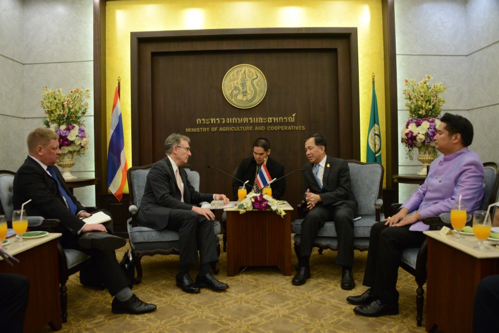 นายกฤษฎา บุญราช รัฐมนตรีว่าการกระทรวงเกษตรและสหกรณ์ ให้การต้อนรับ Mr.Chistopher Humphrey Executive Director EU-ASEAN Business Council และคณะ เข้าเยี่ยมคารวะเนื่องในโอกาสเดินทางเยือนประเทศไทย และหารือในการส่งเสริมการส่งออกผลิตภัณฑ์การเกษตรและเทคโนโลยีการเกษตร และแลกเปลี่ยนความคิดเห็นในประเด็นต่างๆที่เกี่ยวกับการพัฒนาอุตสาหกรรมการเกษตรของประเทศไทย ณ ห้องรับรอง กระทรวงเกษตรและสหกรณ์