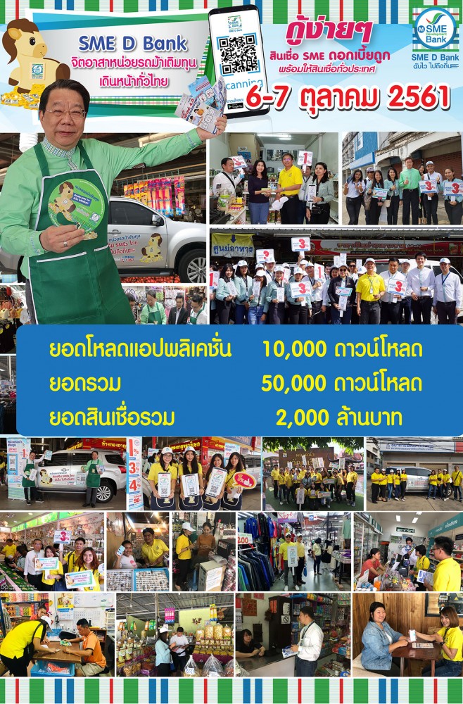 นายมงคล ลีลาธรรม กรรมการผู้จัดการ ธนาคารพัฒนาวิสาหกิจขนาดกลางและขนาดย่อมแห่งประเทศไทย (ธพว.) กล่าวว่า จากการที่ ธพว. จัดกิจกรรม “จิตอาสาหน่วยรถม้าเติมทุน เดินหน้าทั่วไทย” ระหว่างวันที่ 6-7 ตุลาคม 2561 นำบุคลากรทั้งหมดขององค์กรประมาณ 3,000 คน กระจายลงพื้นที่ตามตลาด และย่านการค้าสำคัญต่างๆ ทั่วประเทศกว่า 400 จุด เช่น ตลาดร่มหุบ จ.สมุทรสงคราม , ถนนคนเดินตลาดชุมทางทุ่งสง จ.นครศรีธรรมราช , ตลาด อ.ต.ก. กรุงเทพฯ , ตลาดลาวบางปะกง จ.ฉะเชิงเทรา , กาดจาวเหนือ จ.ลำพูน , ตลาดวารินชำราบ จ.อุบลราชธานี , กาดหนองกระทิง จ.ลำปาง , ตลาดเก่าริมน้ำจันทบูร จ.จันทบุรี , ตลาดน้ำบางใบไม้ จ.สุราษฎร์ธานี และตลาดสดเทศบาลเมืองอำนาจเจริญ2 จ.อำนาจเจริญ เป็นต้น เพื่อแนะนำและเชิญชวนให้ผู้ประกอบการรายย่อยใช้บริการแพลตฟอร์ม SME D Bank แอปพลิเคชัน (Application) บนโทรศัพท์มือถือ ซึ่งสามารถเติมทุนคู่ความรู้