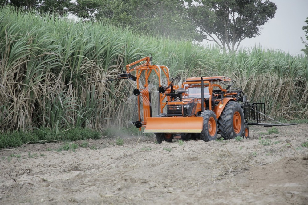 อีกผลิตภัณพ์หนึ่ง เป็น “เครื่องตัดอ้อย ตราช้าง รุ่น SCR100” สำหรับแทรกเตอร์คูโบต้าขนาด 95 แรงม้า โดยการทำงานของเครื่องตัดอ้อยนั้นรวมการทำงานทั้งหมดไว้ในเครื่องเดียวจากการทำงานพร้อมกัน 4 ระบบ ประกอบด้วย ระบบชุดตัด ยอดอ้อยที่สามารถตัดยอดอ้อยได้ตั้งแต่ 1.5 – 4 เมตร ระบบชุดสางใบอ้อย ถูกออกแบบให้ชุดโรลเลอร์ มีรอบการหมุนที่รวดเร็วมากกว่า 900 รอบต่อนาที ทำให้ตีใบได้ละเอียด ลำอ้อยสะอาด ระบบชุดตัดโคนอ้อย สามารถตัดโคนอ้อยได้สม่ำเสมอชิดกับดิน และระบบชุดถาดรวมกอง ที่สามารถบรรทุกน้ำหนักอ้อยได้สูงสุด 500 กิโลกรัมช่วยเก็บรวมกองอ้อยที่ตัดเสร็จแล้วเพื่อรอคีบขึ้นรถบรรทุกต่อไป นอกจากนี้ยังออกแบบให้เข้าทำงานในแปลงอ้อยที่มีระยะร่องปลูกตั้งแต่ 1 เมตรขึ้นไป ช่วยลดข้อจำกัดในเรื่องพื้นที่การทำงานตัดอ้อยได้ 40 – 80 ตันต่อวัน