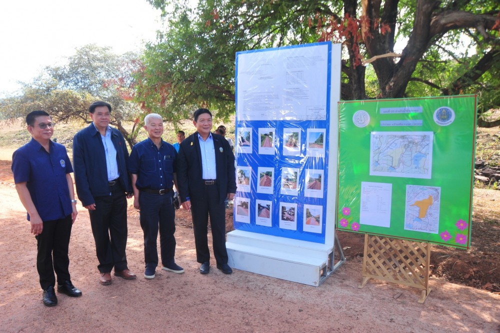จากนั้นไปตรวจเยี่ยมการปรับปรุงถนนลาดยางทำนบดิน อ่างเก็บน้ำห้วยกกคูณ ณ อ่างเก็บน้ำห้วยกกคูณ ต.ก้านเหลือง อ.นาแก จ.นครพนม ซึ่งกระทรวงเกษตรและสหกรณ์ โดยสำนักงานชลประทานที่ 7 ได้รับจัดสรรงบประมาณเพื่อนำมาใช้ในโครงการส่งเสริมการใช้ยางพาราในหน่วยงานภาครัฐ จำนวน 51 รายการ เช่น การปรับปรุงถนนราดยางบนคันคลองส่งน้ำของโครงการชลประทาน และการปรับปรุงถนนราดยางทำนบดินอ่างเก็บน้ำ เป็นต้น