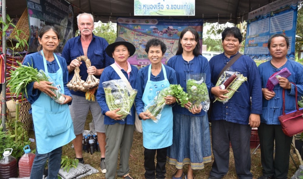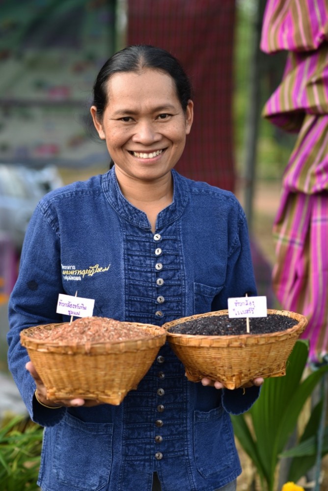 เช่นเดียวกับ นางสาวปราณี นามมุลตรี เลขานุการวิสาหกิจชุมชนกลุ่มผู้ปลูกข้าวเพื่อสุขภาพบ้านนาหว้า-นาคำ ตำบลบ้านเม็ง อ.หนองเรือ จ.ขอนแก่น ที่เริ่มต้นจากการรวมกลุ่มของคนรักสุขภาพ สู่วิสาหกิจชุมชน เล่าให้ฟังว่า “สมาชิกในกลุ่มเป็นเกษตรกรชาวไร่อ้อยที่เดิมทีแค่แบ่งพื้นที่ 2-3 ไร่ไว้ปลูกข้าวเพื่อกินเองในครอบครัว แต่หลังจากที่หน่วยงานภาครัฐและกลุ่มมิตรผลเข้ามาสนับสนุน ทำให้ได้ศึกษาแนวทางการทำเกษตรทฤษฎีใหม่ จึงได้ชักชวนเพื่อนๆ ให้มาร่วมกันทำ เช่น ปลูกผักปลอดสาร เลี้ยงไก่ไข่ ทำฟาร์มหมูหลุม และปลูกข้าวเพื่อสุขภาพ ต่อมาจึงรวมกลุ่มกันใช้เวลาว่างจากการทำไร่อ้อยมาทำข้าวเพื่อสุขภาพและจำหน่ายเป็นอาชีพเสริม เนื่องจากได้วิเคราะห์ตนเองและเห็นว่ากลุ่มเรามีความโดดเด่นและความสนใจในด้านการทำผลิตภัณฑ์เพื่อสุขภาพ โดยได้รับการสนับสนุนจากภาครัฐและมิตรผลในการหาช่องทางการขาย เช่น ตลาดนัดสีเขียวชุมชน ขายให้โรงงานมิตรผล และหน่วยงานภาครัฐอื่นๆ จนปัจจุบันกลุ่มผู้ปลูกข้าวเพื่อสุขภาพบ้านนาหว้า-นาคำสามารถสร้างรายได้ประมาณ 150,000 บาท/ปี นอกจากนี้เรากำลังเริ่มทำโรงเรียนชาวนา เพื่อให้เยาวชนรุ่นใหม่ได้มาเรียนรู้ ไม่อยากให้ลูกหลานละทิ้งพื้นเพเดิม โดยจะสอนตั้งแต่การปลูก การไถ เก็บเกี่ยว จนออกมาเป็นบรรจุภัณฑ์สูญญากาศ เพื่อถ่ายทอดองค์ความรู้และสร้างความมั่นคงในกับชุมชนต่อไป”