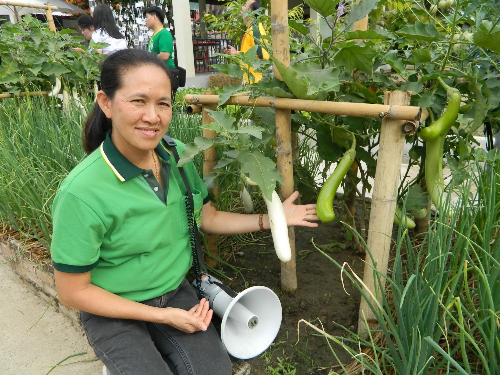 คมคาย สุพลจิตต์ นักศึกษาปีที่ 3 สาขาวิชาพืชผัก คณะเกษตร มหาวิทยาลัยแม่โจ้ ซึ่งเป็นเจ้าหน้าที่ที่คอบอธิบายเวลาผู้ที่เข้าชมงานของสาขาพืชผัก บอกว่า การปลูกมะเขือ 1 ต้น ได้กินมะเขือ 4 ชนิด หรือ 4 สายพันธุ์ มาเสียบกิ่งยอด ทำง่ายมาก