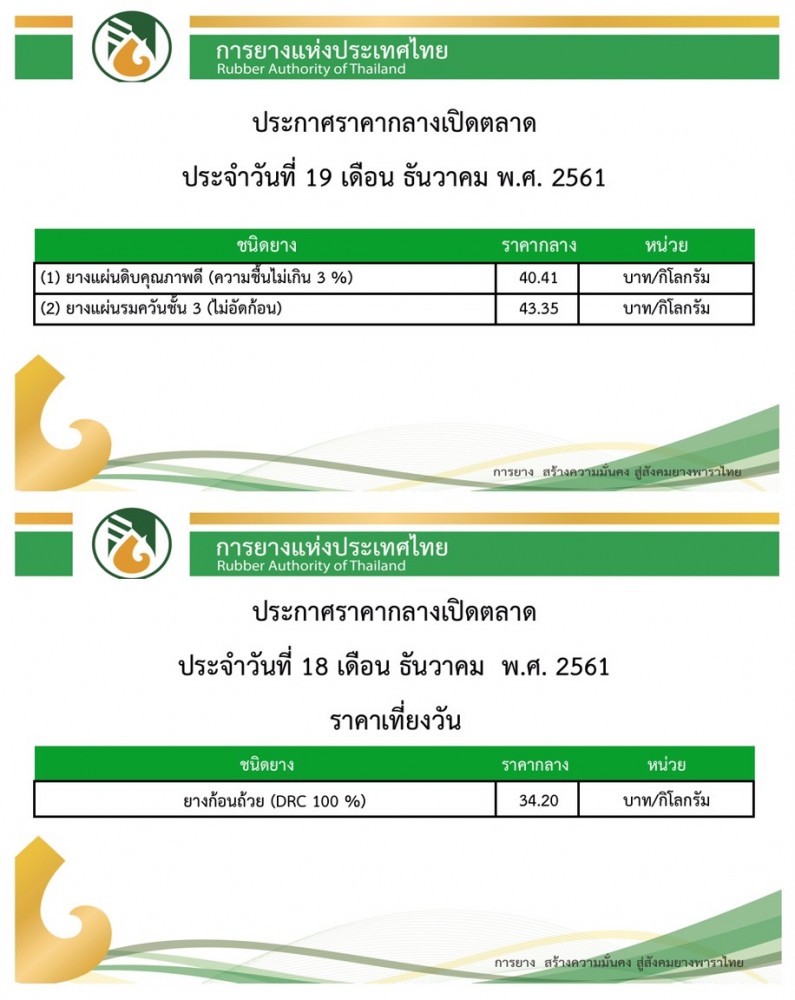 ราคากลางยางพาราเปิดตลาดวันนี้(19 ธ.ค.61)ยางก้นถ้วยมาแตะที่กก. 34 บาทอีกครั้ง ธันวาคม 19, 2018ดลมนัส กาเจราคายางพารา, สถานีข่าววันนี้ราคากลางยางพารา, ราคายางพารา ที่มา : การยางแห่งประเทศไทย