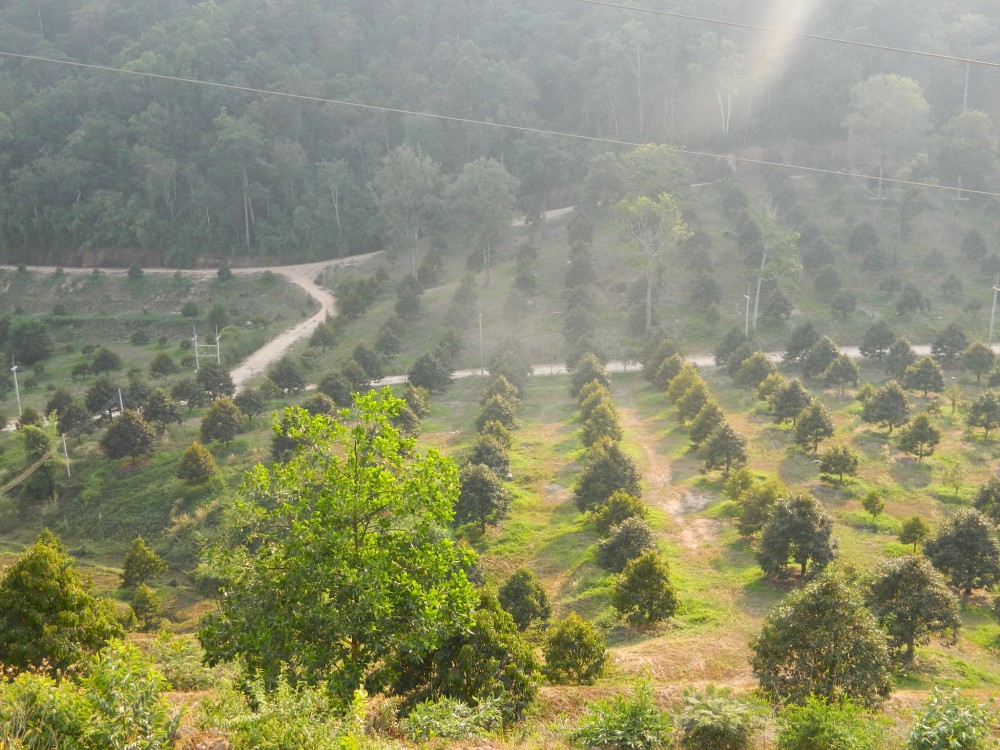 พัชรินทร์ คุ้มตระกูล หรือ “แอน” ผู้จัดการสวน “ทุเรียนแลนด์” แห่งนี้ บอกว่า ได้เปิดบริการนักท่องเที่ยวมาตั้งแต่ต้นปี 2561 ภายในสวนปลูกทุเรียน 900 ไร่กว่า 2 หมื่นต้น มีทุเรียนหมอนทอง ชะนี พวงมณี กระดุม และพันธุ์อื่นๆรวมถึงราชาทุเรียนมาเลเซีย “มูซังคิง” หรือ “เหมา ซาน หวาง” ด้วยจำนวน 300 ต้น