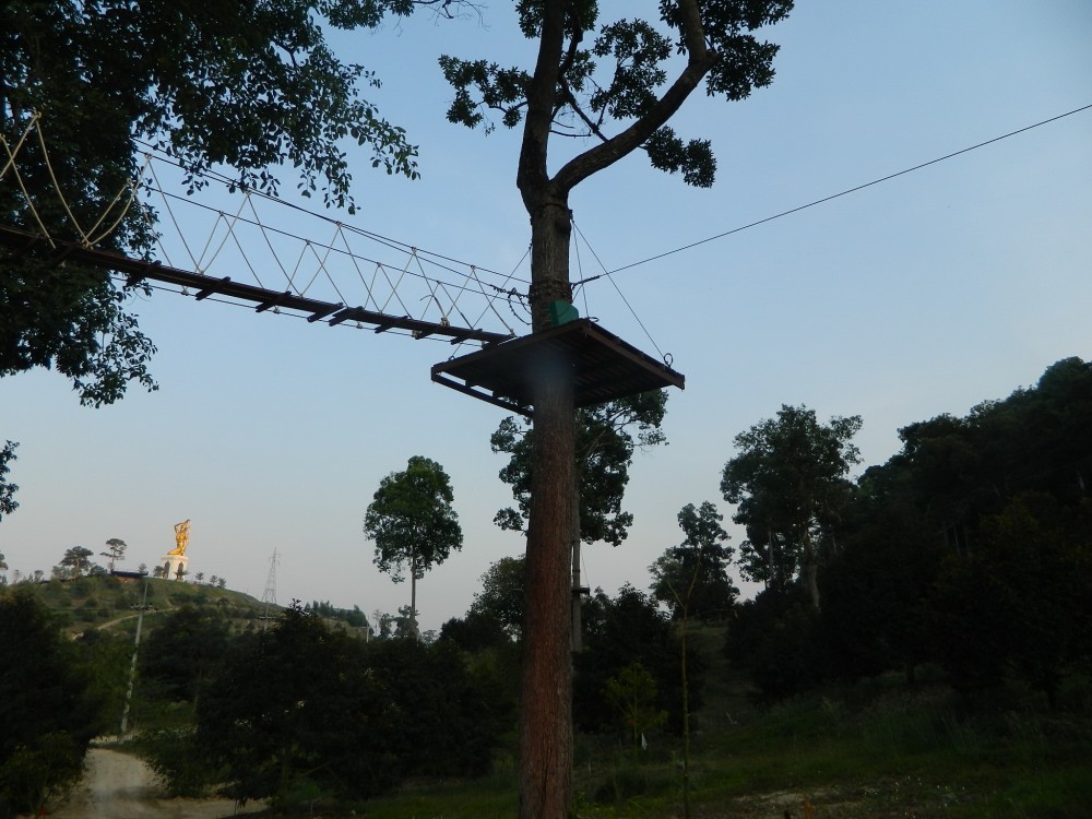 การชมสวนแห่งนี้จะมีรถไฟฟ้าบริการขึ้นไปจุดสูงสุดบนยอดเนินสูง ซึ่งเป็นลานชมวิว ตรงกลางมีรูปปั้นแม่ธรณีมวยผม เป็นจุดเด่นตระหง่านกลางสวน รอบลานเป็นชมวิว จะแลเห็นภาพทิวทัศน์ที่สวยงามมาก เห็นต้นทุเรียนถูกปลูกอย่างเป็นระเบียบ มีทะเลสาบซึ่งเป็นแหล่งน้ำสำหรับใช้ภายในสวน