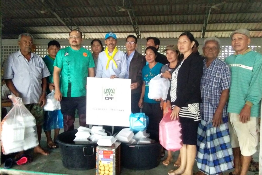 ซีพีเอฟ ระดมกำลังจิตอาสาเร่งช่วยเหลือมอบผลิตภัณฑ์อาหาร น้ำดื่ม ไข่ไก่สด และเปิดสำนักงานเป็นศูนย์พักพิง เพื่อบรรเทาความเดือดร้อนแก่ผู้ประสบภัยจากพายุโซนร้อน “ปาบึก” ในพื้นที่หลายจังหวัดภาคใต้