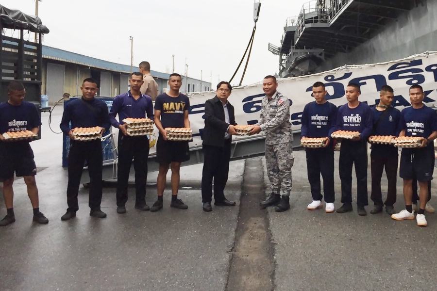 เพื่อนำไปมอบให้กับหน่วยงานที่ให้ความช่วยเหลือในพื้นที่ ซึ่งกองทัพเรือจะลำเลียงไข่ไก่ตลอดจนข้าวสารอาหารแห้งที่ได้รับบริจาคจากหน่วยงานต่างๆ ด้วยเรือรบหลวงจักรีนฤเบศร จาก อ.สัตหีบ จ.ชลบุรี สู่พื้นที่ต่างๆที่ได้รับความเดือดร้อน