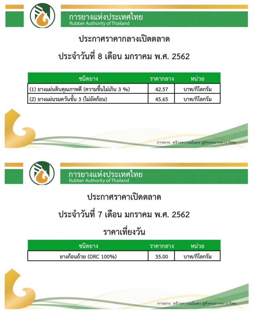 ราคากลางยางพาราเปิดตลาดวันนี้(8ม.ค.62) มกราคม 8, 2019ดลมนัส กาเจราคายางพารา, สถานีข่าววันนี้ราคายางพารา ทีทมา : การยางแห่งประเทศไทย