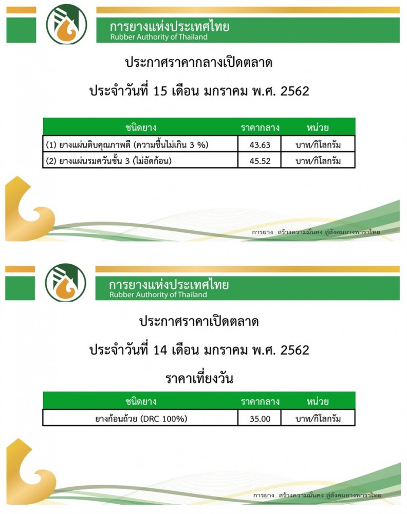 ราคากลางยางพาราเปิดตลาดวันนี้ ( 15 ม.ค.62) มกราคม 15, 2019ดลมนัส กาเจราคายางพารา, สถานีข่าววันนี้ราคากลางยางพารา, ราคายางพารา ที่มา : การยางแห่งประเทศไทย