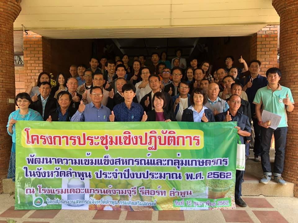 สำนักงานสหกรณ์จังหวัดลำพูน โดยกลุ่มตรวจการสหกรณ์ จัดโครงการประชุมเชิงปฏิบัติการพัฒนาความเข้มแข็งสหกรณ์และกลุ่มเกษตรกรในจังหวัดลำพูน ประจำปีงบประมาณ พ.ศ.2562 โดยมีนายบุญมี จันทรวงศ์ อดีตอธิบดีกรมส่งเสริมสหกรณ์ ร่วมเป็นวิทยากรให้ความรู้ ณ โรงแรมเดอะแกรนด์จามจุรี รีสอร์ท จ.ลำพูน