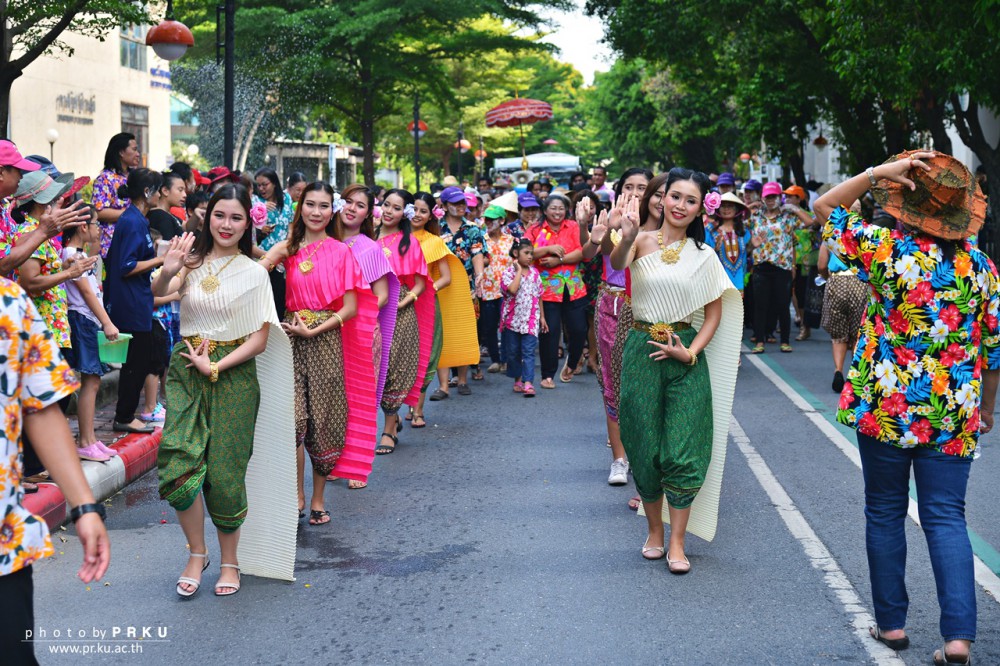 มหาวิทยาลัยเกษตรศาสตร์ จัดงานสืบสานประเพณีสงกรานต์ในรั้วนนทรี “สงกรานต์กลางกรุง … ลั่นทุ่งบางเขน”ในวันพุธที่ 10 เมษายน 2562 ณ ถนนข้าวไรซ์เบอร์รี่ อาคารหอประชุมใหญ่ ในงานมีพิธีทำบุญตักบาตร รดน้ำดำหัวขอพร ขบวนแห่เทพีสงกรานต์/รถบุปผชาติ ก่อพระเจดีย์ทราย กิจกรรมรื่นเริงย้อนยุค ร่วมสนุกกับอุโมงค์ละอองน้ำ การแสดงดนตรีวงเคยู แบนด์ วงรวมดาวกระจุย