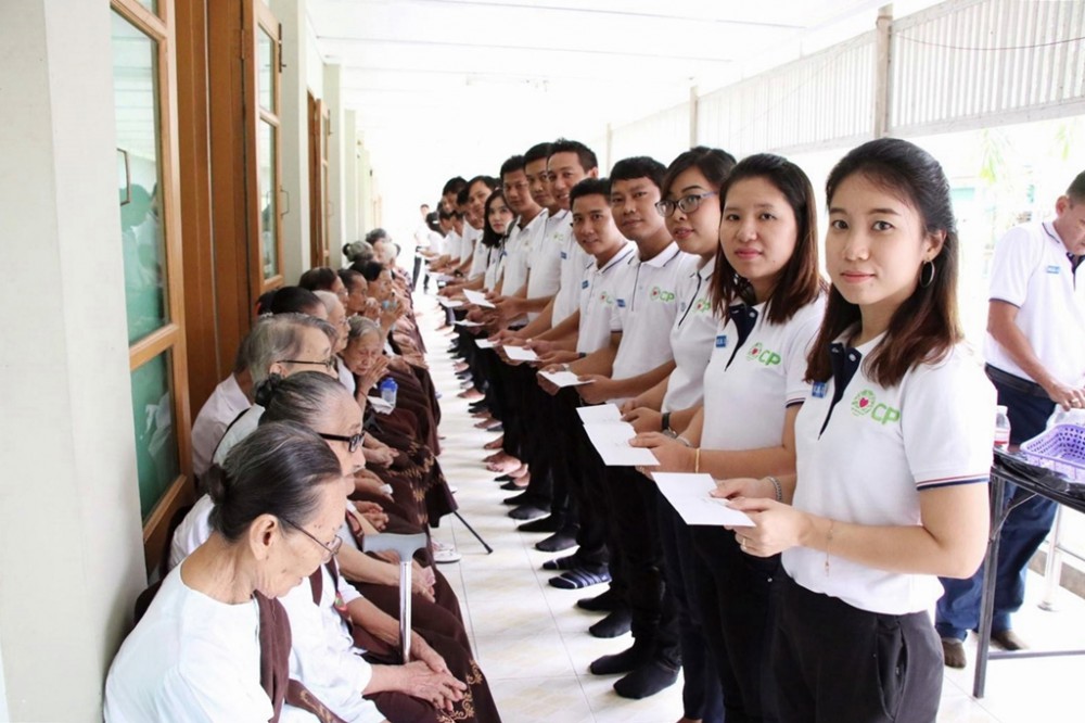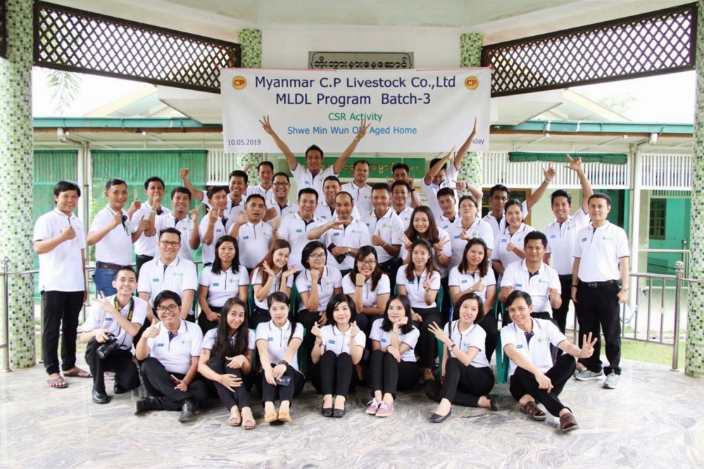 นายดิลก สิริเพ็ญโสภา รองกรรมการผู้จัดการอาวุโส ด้านธุรกิจฟาร์ม บริษัท เมียนมาร์ ซี.พี. ไลฟ์สต็อก จำกัด หรือ ซี.พี. เมียนมา ในเครือเจริญโภคภัณฑ์ นำคณะผู้นำรุ่นใหม่ หลักสูตร Myanmar Leader Develop Leader รุ่นที่ 3 (MLDL) ร่วมโครงการ Food for Life ปีที่ 11 มอบความสุขและสร้างกำลังใจให้ผู้สูงอายุ โดยมีกิจกรรมจัดเลี้ยงอาหารกลางวัน การปรับทัศนียภาพบ้านพักให้สะอาด สวยงาม น่าอยู่ พร้อมมอบเครื่องอุปโภคบริโภค และมอบเงินบริจาคในการจัดซื้อเครื่องปรับอากาศ ณ บ้านพักคนชรา ชู่ย มิน วุน เขตเมงกะลาดง เมืองย่างกุ้ง ประเทศเมียนมา