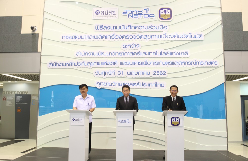 เพื่อร่วมมือพัฒนาและผลิตเครื่องตรวจวัดสุขภาพเบื้องต้นอัตโนมัติ เพื่อให้ประชาชนและเกษตรกรลูกค้า ธ.ก.ส. สามารถเข้าถึงเครื่องวัดได้ด้วยตนเอง และยังเป็นการนำข้อมูลไปใช้ประโยชน์สำหรับการดูแลและเฝ้าระวังสุขภาพของผู้ถูกวัด ตลอดจนสามารถรับฟังข้อมูลการแปลผลพร้อมคำแนะนำในการดูแลสุขภาพโดยจะนำไปติดตั้ง ณ สาขา ธ.ก.ส. กระจายไปยัง 10 จังหวัด ๆ ละ 10 เครื่อง ตั้งแต่เดือนกรกฎาคมเป็นต้นไป