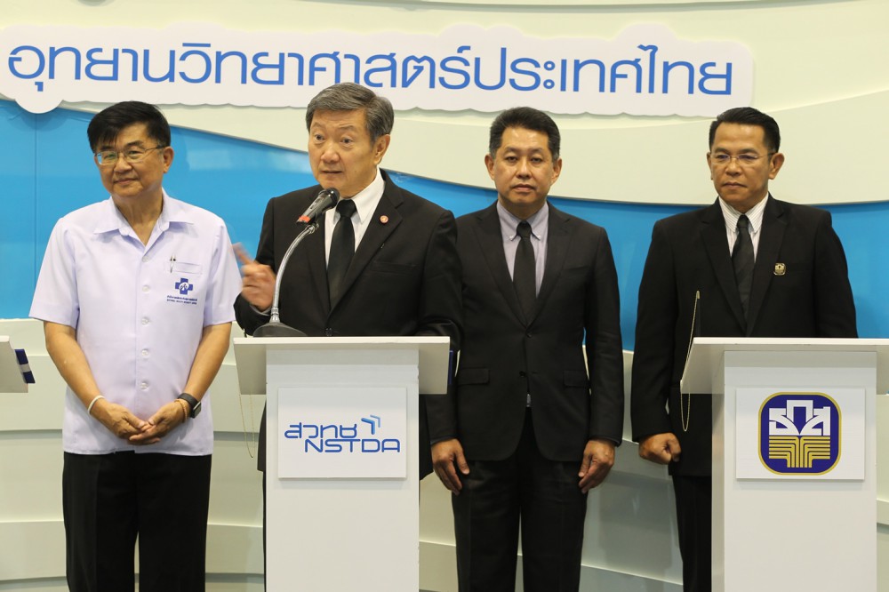 ศาสตราจารย์คลินิก เกียรติคุณนายแพทย์ ปิยะสกล สกลสัตยาทร รัฐมนตรีว่าการกระทรวงสาธารณสุข เป็นสักขีพยานในการลงนามบันทึกความร่วมมือ การพัฒนาและผลิตเครื่องตรวจวัดสุขภาพเบื้องต้นอัตโนมัติตามโครงการรู้เท่าทันเท่ากับการป้องกันโรคไม่ติดต่อเฉลิมพระเกียรติ เนื่องในโอกาสมหามงคลพระราชพิธีบรมราชาภิเษก เฉลิมพระเกียรติ ระหว่าง นายแพทย์ศักดิ์ชัย กาญจนวัฒนา เลขาธิการสำนักงานหลักประกันสุขภาพแห่งชาติ (สปสช.) ดร.ณรงค์ ศิริเลิศวรกุล ผู้อำนวยการสำนักงานพัฒนาวิทยาศาสตร์และเทคโนโลยีแห่งชาติ (สวทช.) และนายกษาปณ์ เงินรวง ผู้ช่วยผู้จัดการธนาคารเพื่อการเกษตรและสหกรณ์การเกษตร (ธ.ก.ส.) ณ อุทยานวิทยาศาสตร์ประเทศไทย จังหวัดปทุมธานี เมื่อวันที่ 31 พฤษภาคม 2562