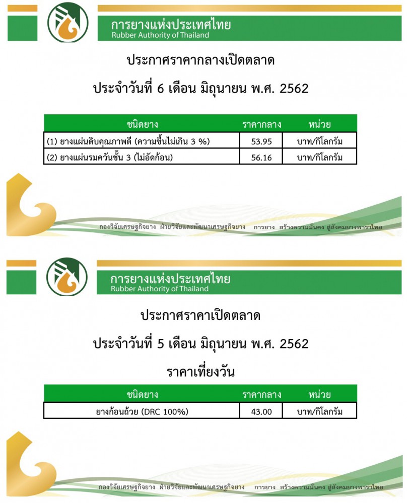 ราคากลางยางพาราเปิดตลาดวันนี้(6 มิ.ย.62)ยางแผ่นดิบเกือบแตะเพดาน กก. 54 บาท มิถุนายน 6, 2019มิถุนายน 6, 2019ดลมนัส กาเจราคายางพารา, สถานีข่าววันนี้ยางแผ่นเกือบแตะ กก.54 บาท.ราคายางพารา, ราคากลางยางประจำวันนี้ ที่มา : การยางแห่งประเทศไทย