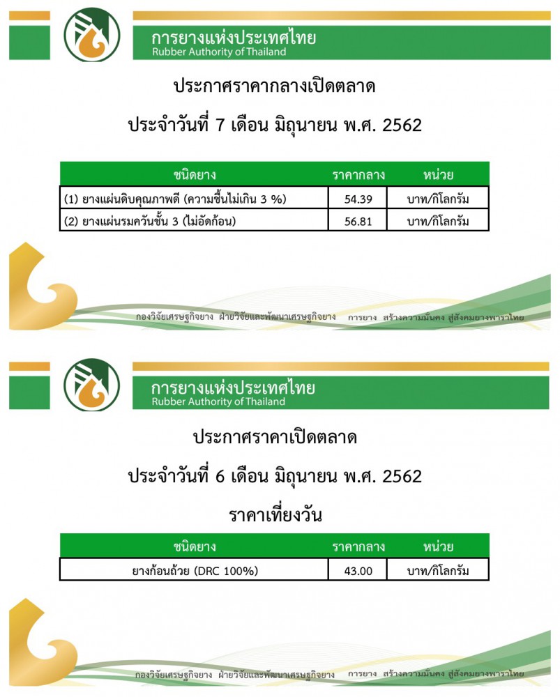 ราคากลางยางพาราเปิดตลาดวันนี้ (7 มิ.ย.62)ยางแผ่นดิบทะลุเพดาน กก. 54 บาท