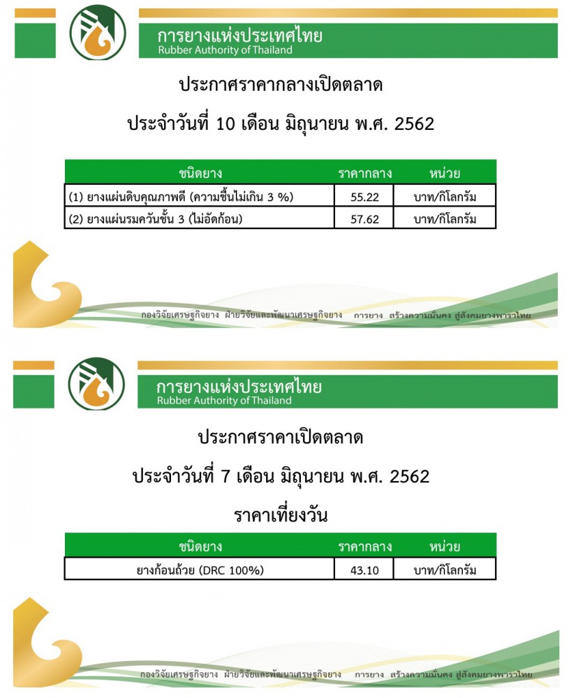 ราคากลางยางพาราเปิดตลาดวันนี้(10 มิ.ย.62)ยางแผ่นดิบพุ่งอีกทะลุกว่า 55 บาท มิถุนายน 10, 2019มิถุนายน 10, 2019ดลมนัส กาเจราคายางพารา, สถานีข่าววันนี้ยางแผ่นดิบ กก.55.22 บ., ราคากลางยางวันนี้, ราคายางพารา ที่มา : การยางแห่งประเทศไทย