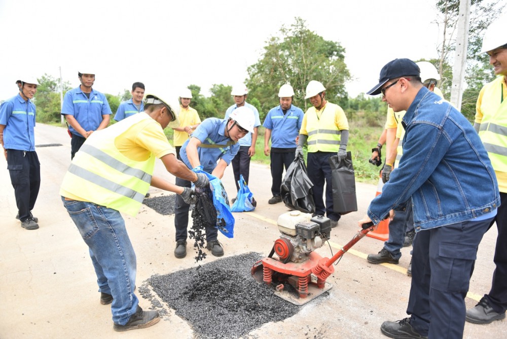 จำกัด (มหาชน) เพื่อสาธิตวิธีการปรับปรุงแก้ไขถนนที่ชำรุดด้วยตนเองแก่ชุมชน สะท้อนถึงความร่วมมือร่วมใจของทุกภาคส่วน ในการนำความรู้ความเชี่ยวชาญของแต่ละองค์กร มาร่วมกันพัฒนาชุมชนเพื่อลดความเสี่ยงและเพิ่มความปลอดภัยในการสัญจรบนท้องถนน เพื่อคุณภาพชีวิตที่ดีขึ้นของคนในชุมชน
