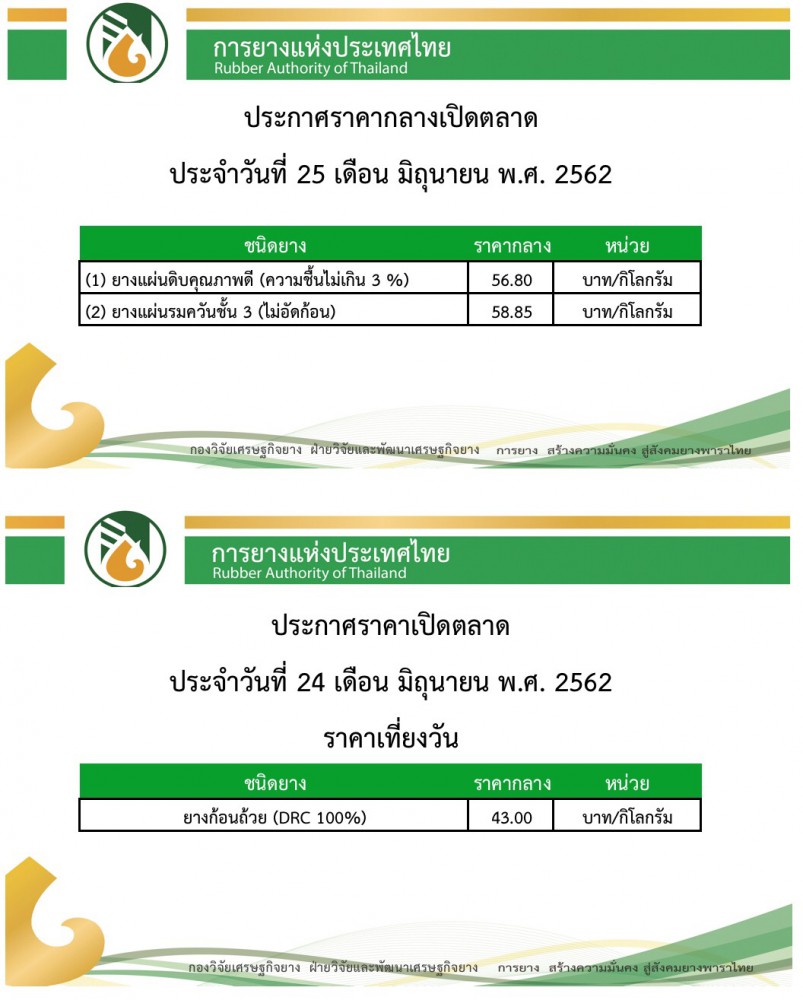 ราคากลางยางพาราเปิดตลาดวันนี้(25 มิ.ย.62) ยางแผ่นดิบปรับลงเล็กน้อย