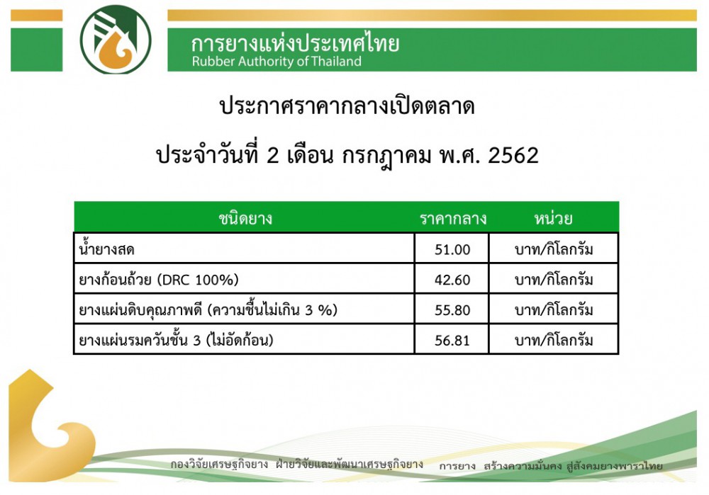 ราคากลางยางพาราเปิดตลาดวันนี้ (2 ก.ค.62)ลดลงอีก