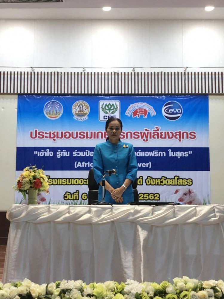 นางสาวสิริมา วัฒโน รองผู้ว่าราชการจังหวัดยโสธร กล่าวว่า การป้องกันโรคอหิวาต์แอฟริกาในสุกร หรือ ASF เป็นวาระแห่งชาติที่่ต้องระดมความร่วมมือจากทุกภาคส่วนป้องกันโรค ASF ในสุกร แม้ว่าในขณะนี้ยังไม่พบการระบาดของโรคในประเทศไทย การจัดอบรมให้ความรู้แก่เกษตรกรผู้เลี้ยงหมูรายย่อยในจังหวัดยโสธร จะช่วยสร้างความตื่นตัวให้เกษตรกรรายย่อยที่เป็นฟันเฟืองที่สำคัญมีความพร้อมในการป้องกันอย่างเข้มแข็ง