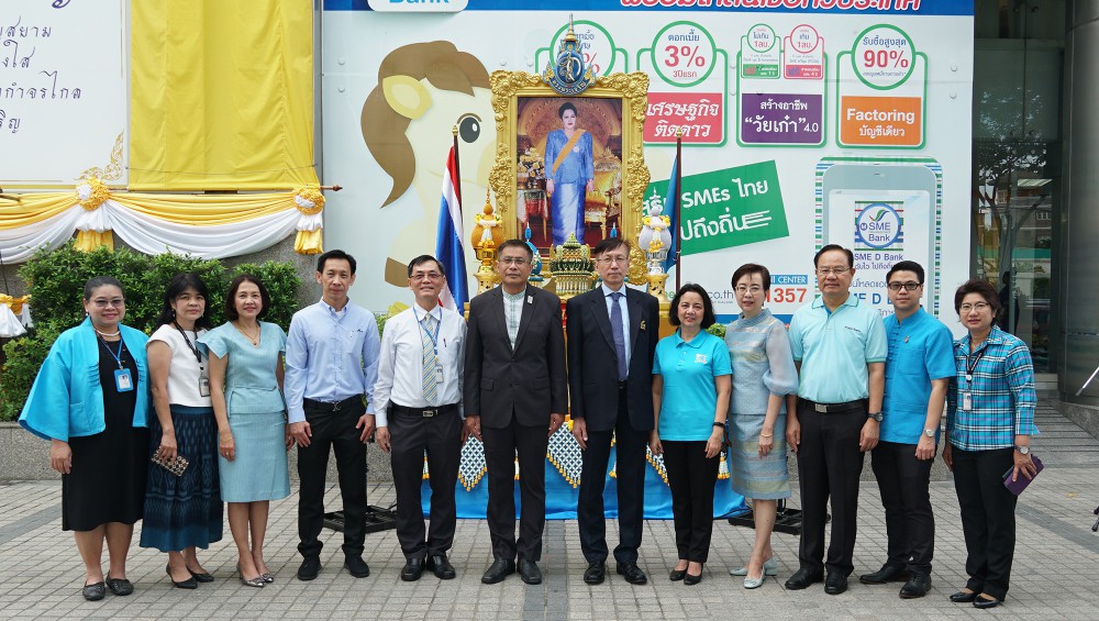 โดยมีพิธีเจริญพระพุทธมนต์ พิธีทำบุญตักบาตรข้าวสารอาหารแห้งพระสงฆ์ จำนวน 9 รูป พิธีถวายราชสักการะเบื้องหน้าพระบรมฉายาลักษณ์ กล่าวถวายราชสดุดีเฉลิมพระเกียติ และถวายพระพรชัยมงคล พร้อมขับร้องเพลงสรรเสริญพระบารมี ณ อาคาร SME D Bank สำนักงานใหญ่