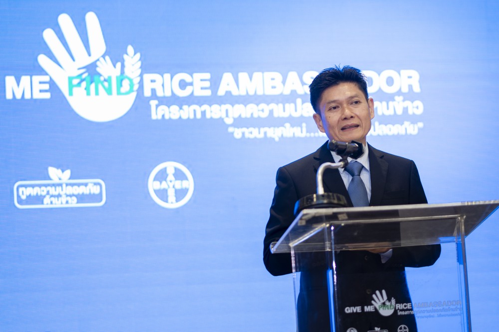 ด้าน Mr. Ricky Ho, Head of Regulatory Science APAC, Bayer, Crop Science Division กล่าวว่า ประเทศไทยเป็นแหล่งปลูกข้าวที่สำคัญของโลก ซึ่งไบเออร์เป็นบริษัทชั้นนำระดับโลกที่ขับเคลื่อนด้วยนวัตกรรม การวิจัยและพัฒนา ภายใต้รากฐาน “วิทยาศาสตร์เพื่อชีวิตที่ดี” อันเป็นพันธกิจที่ไบเออร์มุ่งมั่นเพื่อให้บรรลุผลในภาคเกษตรกรรม โดยโครงการสร้างทูตความปลอดภัยด้านข้าวที่ดำเนินการร่วมกับกรมการข้าวในครั้งนี้ เกิดขึ้นจากความต้องการที่จะส่งเสริมและสนับสนุนให้เกษตรกรด้านข้าวได้รับความรู้เกี่ยวกับการใช้ผลิตภัณฑ์อารักขาพืชอย่างเหมาะสม สร้างความมั่นใจในการปฏิบัติทางการเกษตรที่ดีในลักษณะที่เป็นมิตรต่อสิ่งแวดล้อม และสามารถถ่ายทอดความรู้สู่ชุมชนในฐานะทูตความปลอดภัยด้านข้าว ซึ่งความร่วมมือในครั้งนี้ถือเป็นจุดเริ่มต้นที่แข็งแกร่งระหว่างกรมการข้าวและไบเออร์ และมั่นใจว่าเกษตรกรด้านข้าวจะสามารถเก็บเกี่ยวสิ่งที่เป็นประโยชน์สูงสุดผ่านความร่วมมือในครั้งนี้