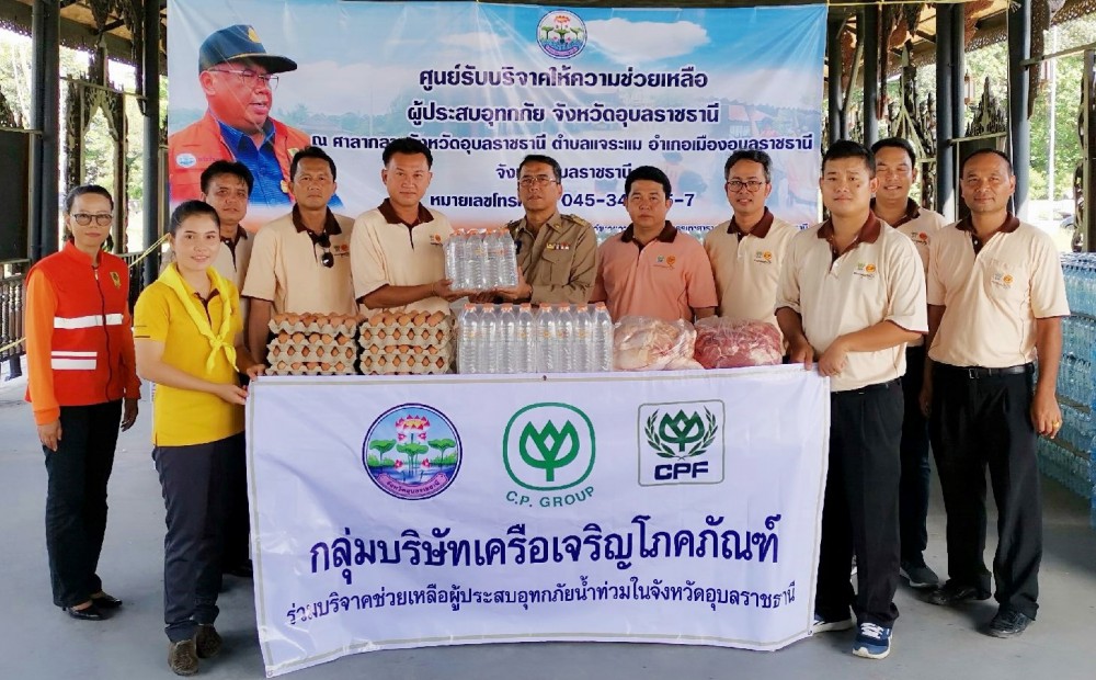 โดยมี นายณัฎฐ์เอก เมืองไทยธัช ผู้บริหารอาวุโส ด้านมวลชนสัมพันธ์และบริหารความเสี่ยง ภาคตะวันออกเฉียงเหนือ ซีพีเอฟ เป็นตัวแทนมอบอาหารสด ได้แก่ เนื้อหมู เนื้อไก่ อย่างละ 400 กก. รวม 800 กก. ไข่ไก่ 4,000 ฟอง และน้ำดื่ม 600 ขวด ให้แก่ นายเธียรชัย พุทธรังษี รองผู้ว่าราชการจังหวัดอุบลราชธานี นำไปช่วยเหลือผู้ประสบอุทกภัยในพื้นที่ต่างๆ ของ จ.อุบลราชธานี