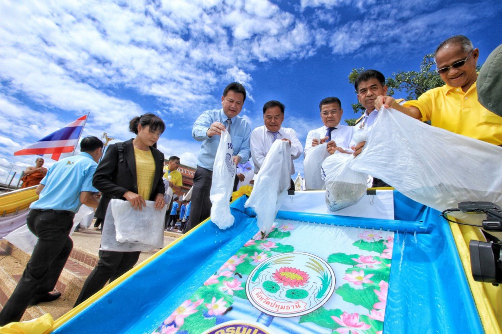 ทั้งนี้ จังหวัดปทุมธานี ประมงจังหวัดปทุมธานี หน่วยงานเอกชน และประชาชน ได้ร่วมจัดกิจกรรมปล่อยพันธ์สัตว์น้ำในปีนี้ โดยมี นายอภิชัย สาธิตเกษม ผู้จัดการแผนก บริษัท ซีพี-เมจิ จำกัด หรือ ซีพี เมจิ ในกลุ่มบริษัท เจริญโภคภัณฑ์อาหาร จำกัด (มหาชน) หรือ ซีพีเอฟ เป็นตัวแทนบริษัท สนับสนุนผลิตภัณฑ์นมเมจิ แก่ นายธีรทัศน์ ศิริแดง ประมงจังหวัดปทุมธานี