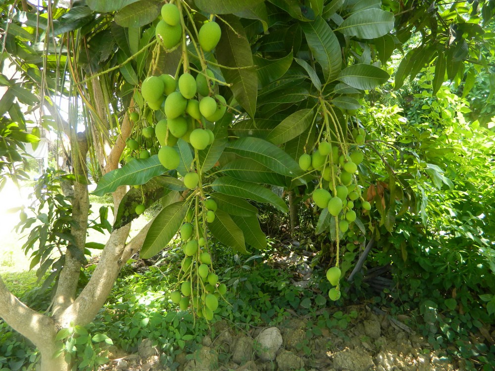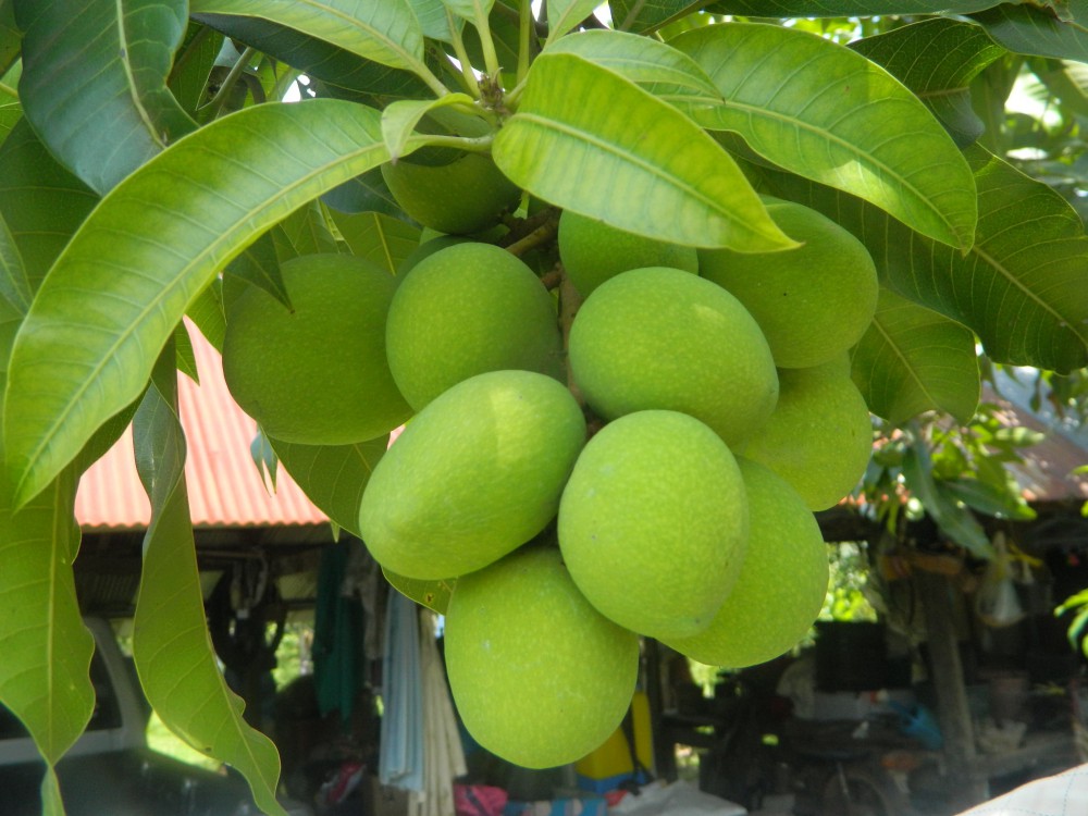 อีกสายพันธุ์หนึ่ง ผลเล็กกว่า รูปทรงกลม ที่ก้นมีติ่งเหมือนกัน สีผิวเปลือกจะออกโทนสีขาวเห็นได้ชัด ผลเล็กกว่า เนื้อบางกว่า ถ้ากินดิบรสเปรี้ยวน้อยกว่า แต่ถ้าปล่อยให้สุก รสชาตจะหวานฉ่ำ อร่อยกว่าผลสีเขียว ปีนี้มะม่วงเบาราคาดีมาก ซื้อจากสวนราคา กก.ละ 80 บาท (รายละเอียตามคลิป)