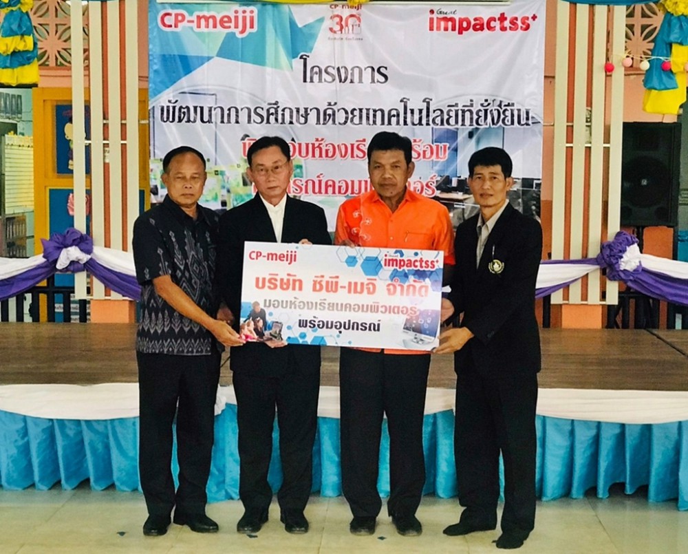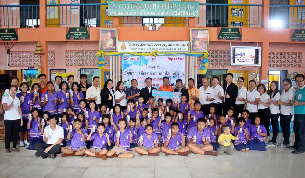 นายวิวัฒน์ ภูมิพิทักษ์กุล รองกรรมการผู้จัดการอาวุโส บริษัท ซีพี-เมจิ จำกัด เป็นตัวแทนบริษัทฯ ส่งมอบห้องเรียนคอมพิวเตอร์ และอุปกรณ์คอมพิวเตอร์ แก่โรงเรียนวัดหนองจิก ภายใต้ โครงการพัฒนาการศึกษาด้วยเทคโนโลยีที่ยั่งยืน เพื่อนำเทคโนโลยีสารสนเทศมาช่วยพัฒนาการเรียนการสอน พร้อมมอบผลิตภัณฑ์นมหลากหลายชนิดและผลิตภัณฑ์โยเกิร์ตเมจิ